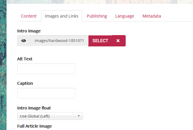 If you want your blog to appear with an introduction image please click on the tab called 'images and links"